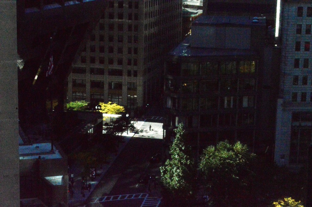 This is a photo from last week that I keep looking back at. It’s the view from my office in Post Office Square. Something about the person crossing the street feels cartoonish. Like from a newspaper comic. It could be anyone. And they’re approaching the light source in a block surrounded by shadows made by the tall, corporate skyscrapers. The person has found an exit by way of crosswalk. Not jaywalking. Almost foolishly legal and safe. Nothing like New York.